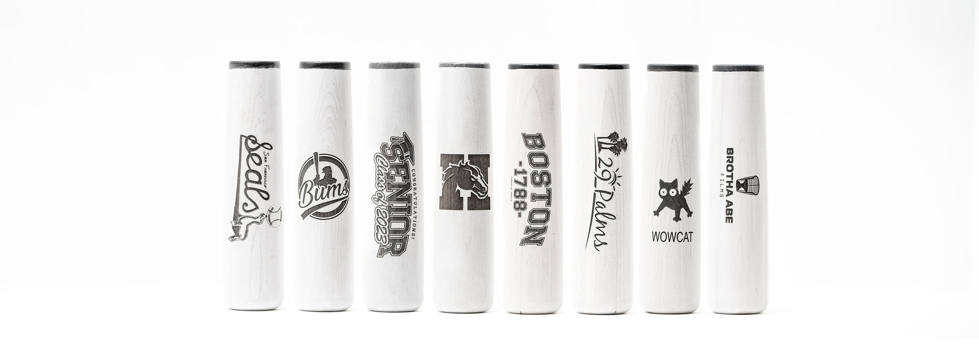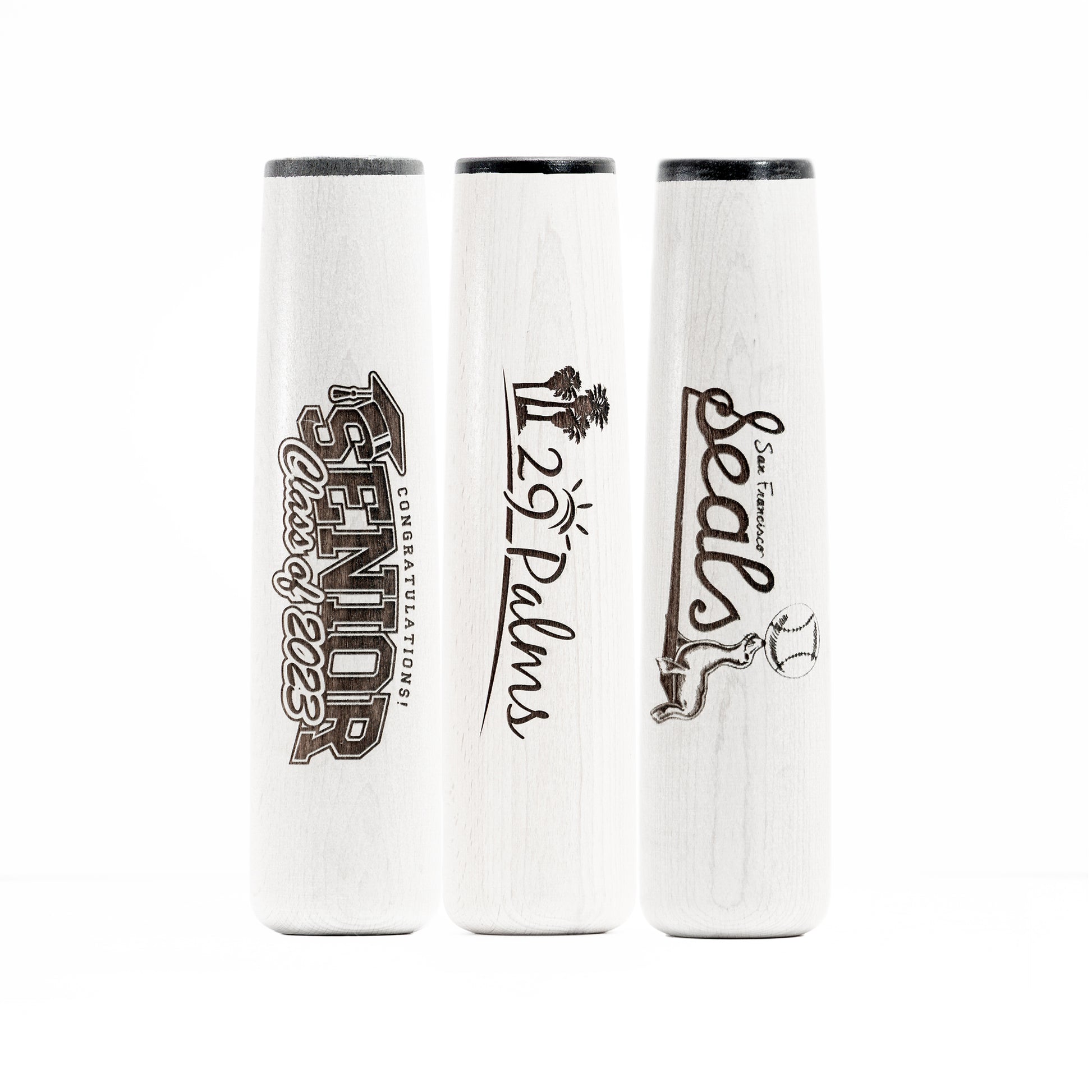 Comes white-washed and with a pin stripe, just like a baseball bat. The bottom has been cupped also like an actual baseball bat, allowing for better stability. Holds up to 12 full oz. Not recommended for dishwasher.